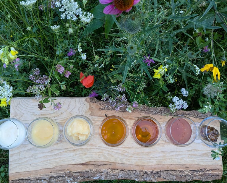 Degustacijų metu ragaujame rūšinį medų. Kaip kavos ar vyno, taip ir medaus profilį formuoja klimatas, dirvožemis, ekosistema ir žmogaus veikla. Tačiau svarbiausia — iš kokių augalų surenkamas nektaras.